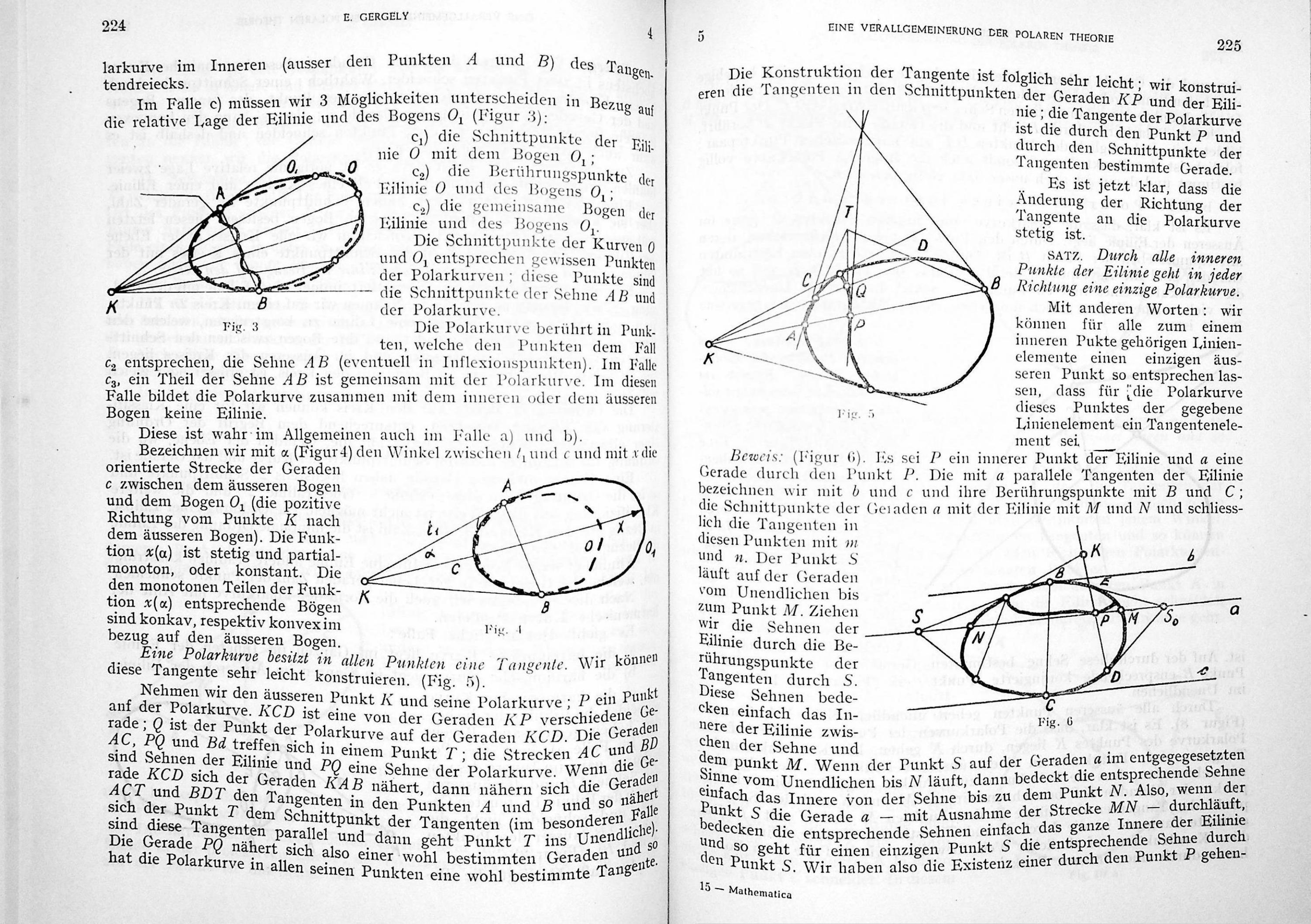 II. Let us consider such a line a through the outer pointP_(1)which intersects the oval. The polar curve of the pointPis the geometric locus of the point whichPfrom the points of intersection of the line a with the curve of the egg, it is harmonically separated. This determination also makes sense in the case of an interior point with respect to the curve of the egg, and in this way all interior points also have a polar curve.