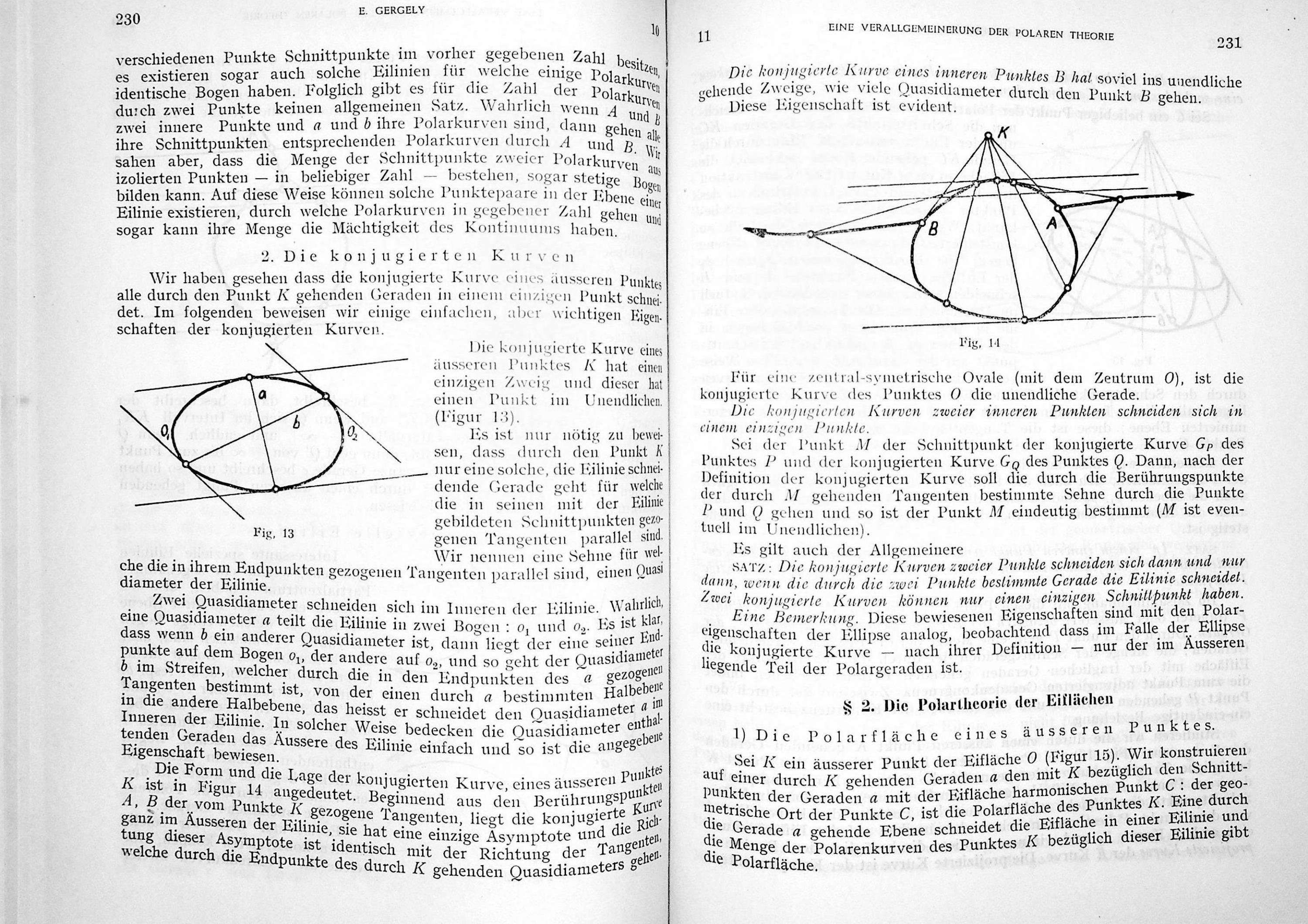 different points have points of intersection in the previously given number; there are even oval curves for which some polar curves have identical arcs. Consequently, there is no general theorem for the number of polar curves through two points. Indeed, ifAandBtwo interior points andaandbif their polar curves are, then all their points of intersection pass through corresponding polar curvesAandBWe saw, however, that the set of intersection points of two polar curves can consist of isolated points—in any number—and can even form continuous arcs. In this way, such pairs of points can exist in the plane of an oval curve through which a given number of polar curves pass.