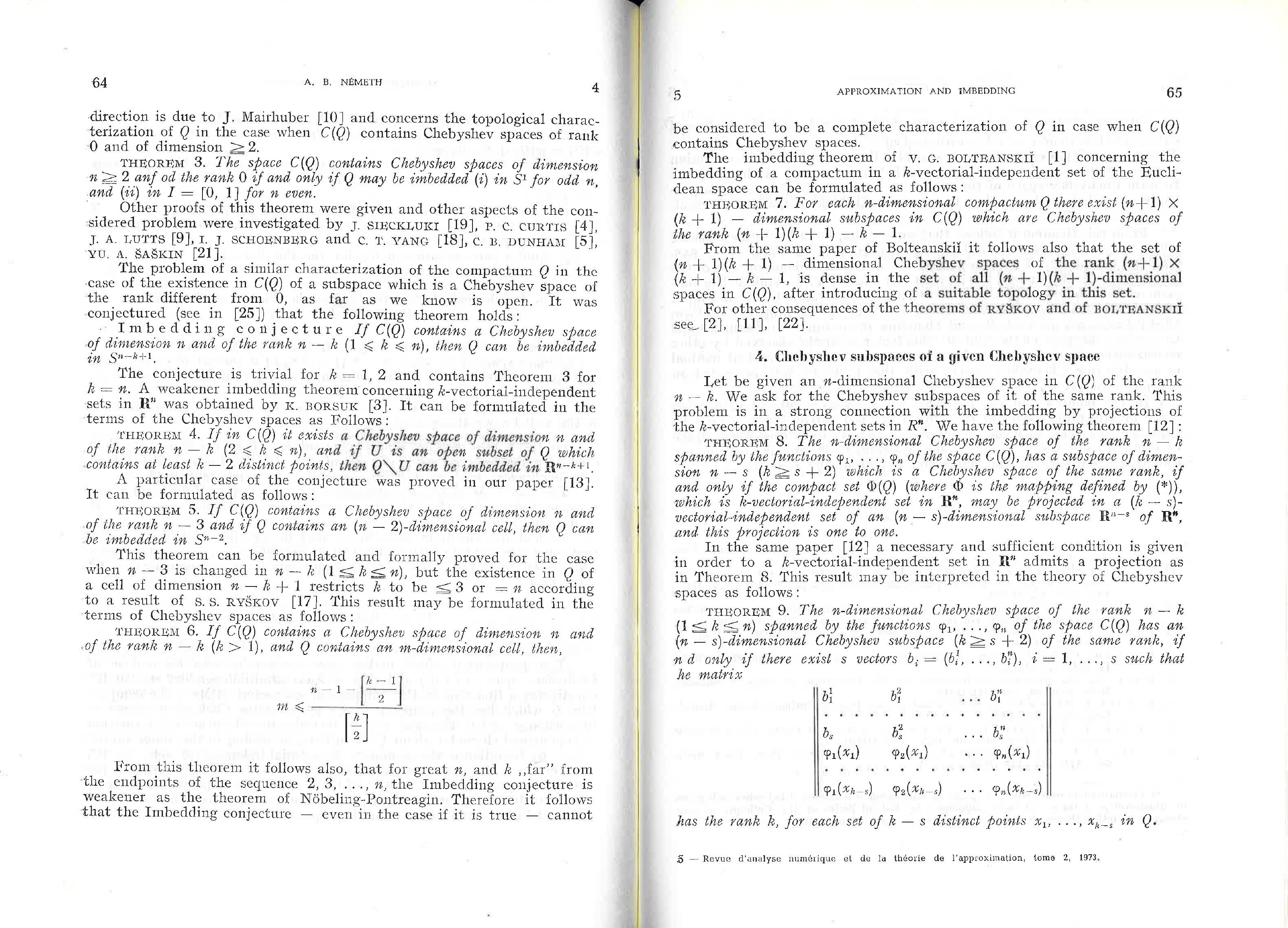 [12] N émetlı, A.B. Homeomorphe projections of kk-independent sets and Chebyshev subspaces of finite dimen sional Chebyshev spaces. Mathematica (Cluj), 9(32), 325-333 (1967).
