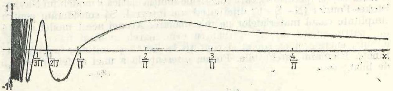 În mişearea turbulentă, cîmpurile g g ggg nụ mai sînt fizic relevante, iar aparatura de măsură folosită în regim laminar, aici nu mai este adecvată. Turbulența este un regim de curgere principial distinct de cel laminar : în cazul turbulent modelul N-S-F își păstrează valabilitatea, dar cîmpurile. (instantanee) furnizate de el nu mai sînt folositoare, datorită variaţiilor deosebit de rapide și complicate, practic aleatoare. O variație asemănătoare are loc pentru functia f : ( 0 , ) R , f ( x ) = sin x 1 f : ( 0 , ) R , f ( x ) = sin x 1 f:(0,oo)rarrR,f(x)=sin x^(-1)f:(0, \infty) \rightarrow \mathbb{R}, f(x)=\sin x^{-1}f:(0,)R,f(x)=sinx1 care, pentru x x xxx mari, este lent variabilă în vreme ce variația sa devine din ce în ce mai rapidă, cînd x 0 x 0 x rarr0x \rightarrow 0x0. Cu toate acestea f f fff este infinit diferențiabilă dar stabilirea valorii sale într-un punct x 0 x 0 x_(0)x_{0}x0 apropiat de 0 este dificilă, cerînd o precizie din ce în ce mai mare. Foarte aproape de 0 este practic imposibilă o astfel de determinare, o mică abatere în specificarea lui x 0 x 0 x_(0)x_{0}x0 conducînd pentru f ( x 0 ) f x 0 f(x_(0))f\left(x_{0}\right)f(x0) la orice valoare cuprinsă între -1 și +1 (fig. 1). Literatura