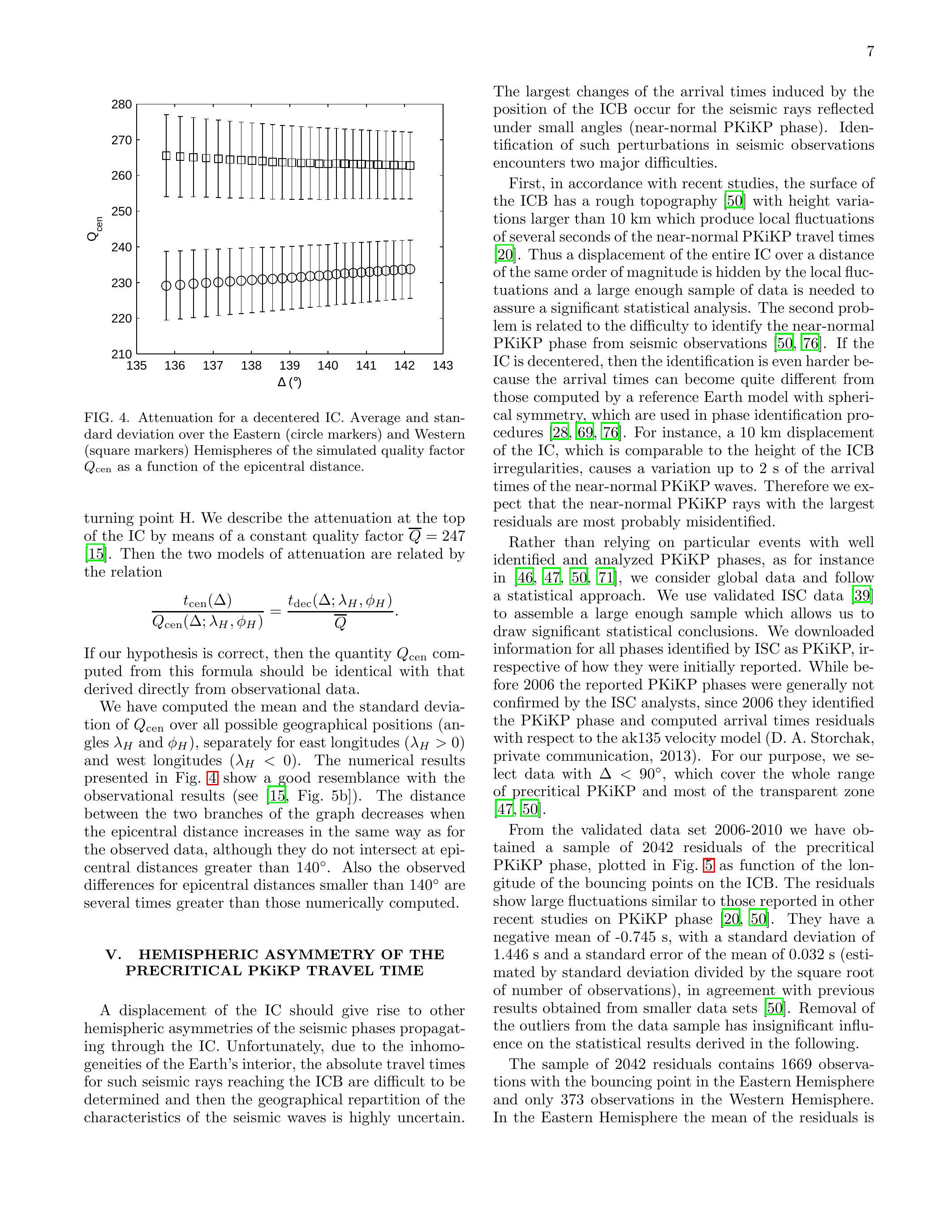 hemispheric asymmetry of the precritical PKiKP travel times (Sect. V);
