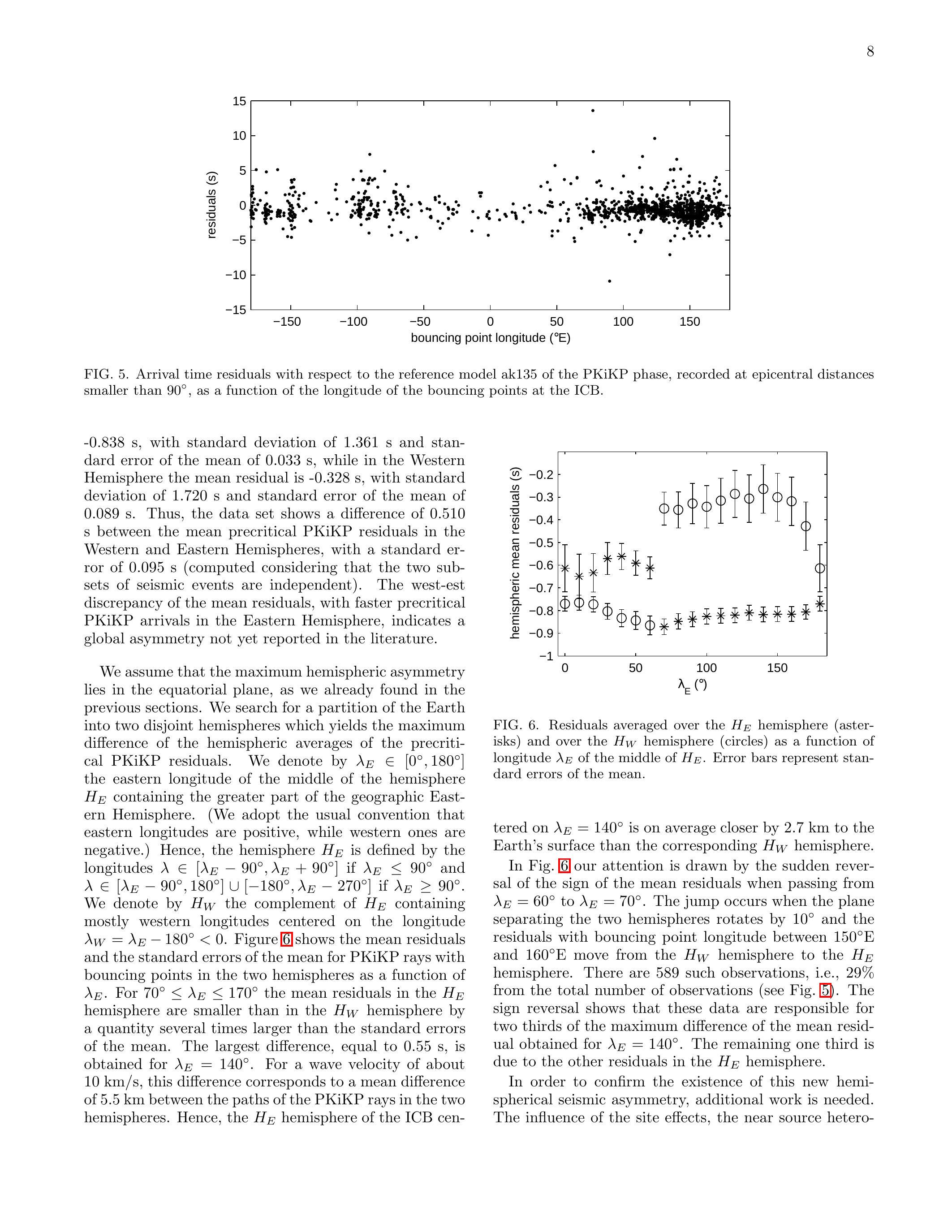 isotropic hemispheric asymmetry of the travel times at the top of the IC (Sect. IIII);