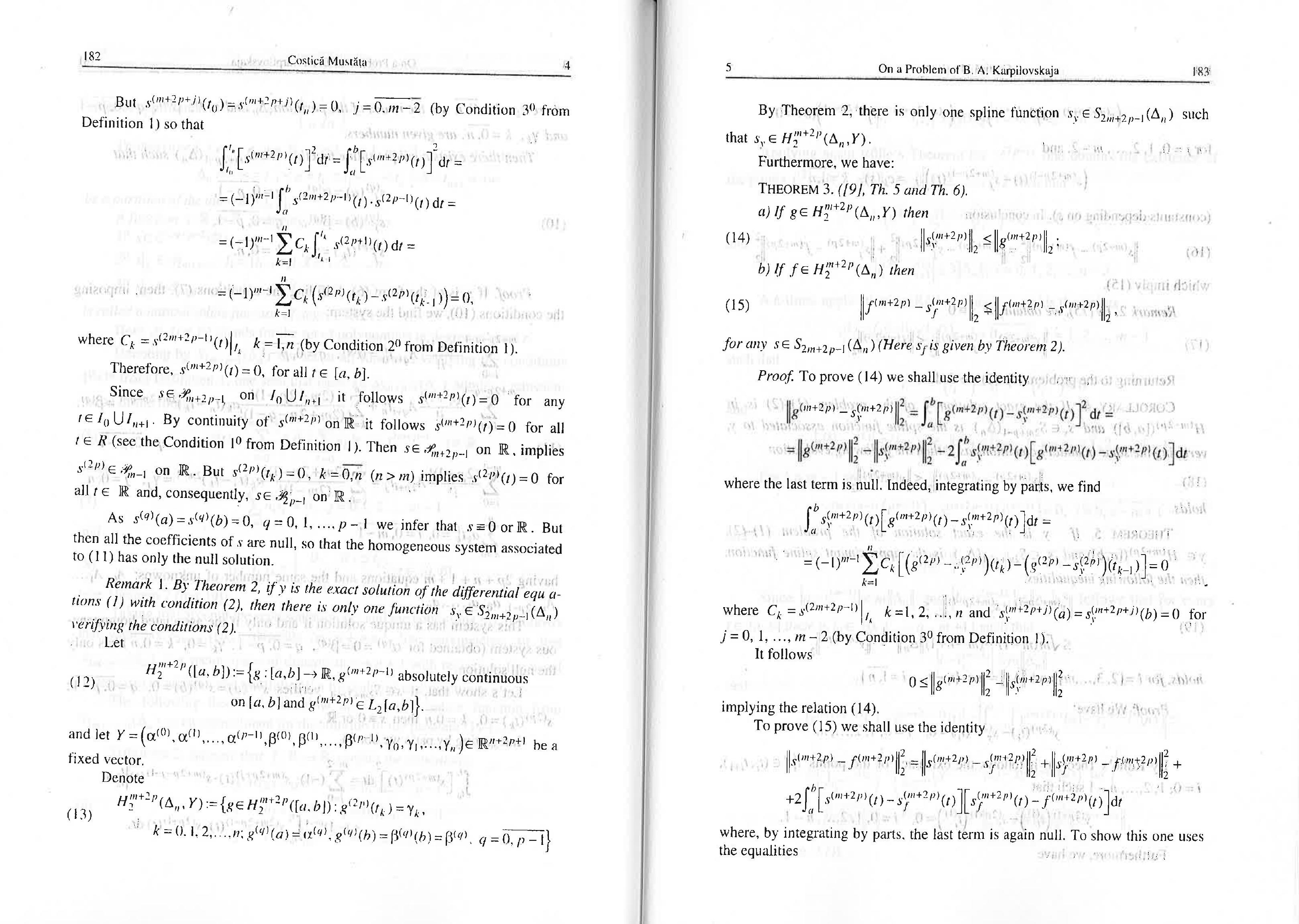 Let's show that, if s inS_(2m+2p-1)s \in S_{2 m+2 p-1} verifies s^((q))(a)=s^((q))(b)=0,quad q= bar(0,p-1)s^{(q)}(a)=s^{(q)}(b)=0, \quad q=\overline{0, p-1}; s^((2p))(t_(k))=0,k= bar(0,n)s^{(2 p)}\left(t_{k}\right)=0, k=\overline{0, n} then s-=0s \equiv 0 or R\mathbb{R}.