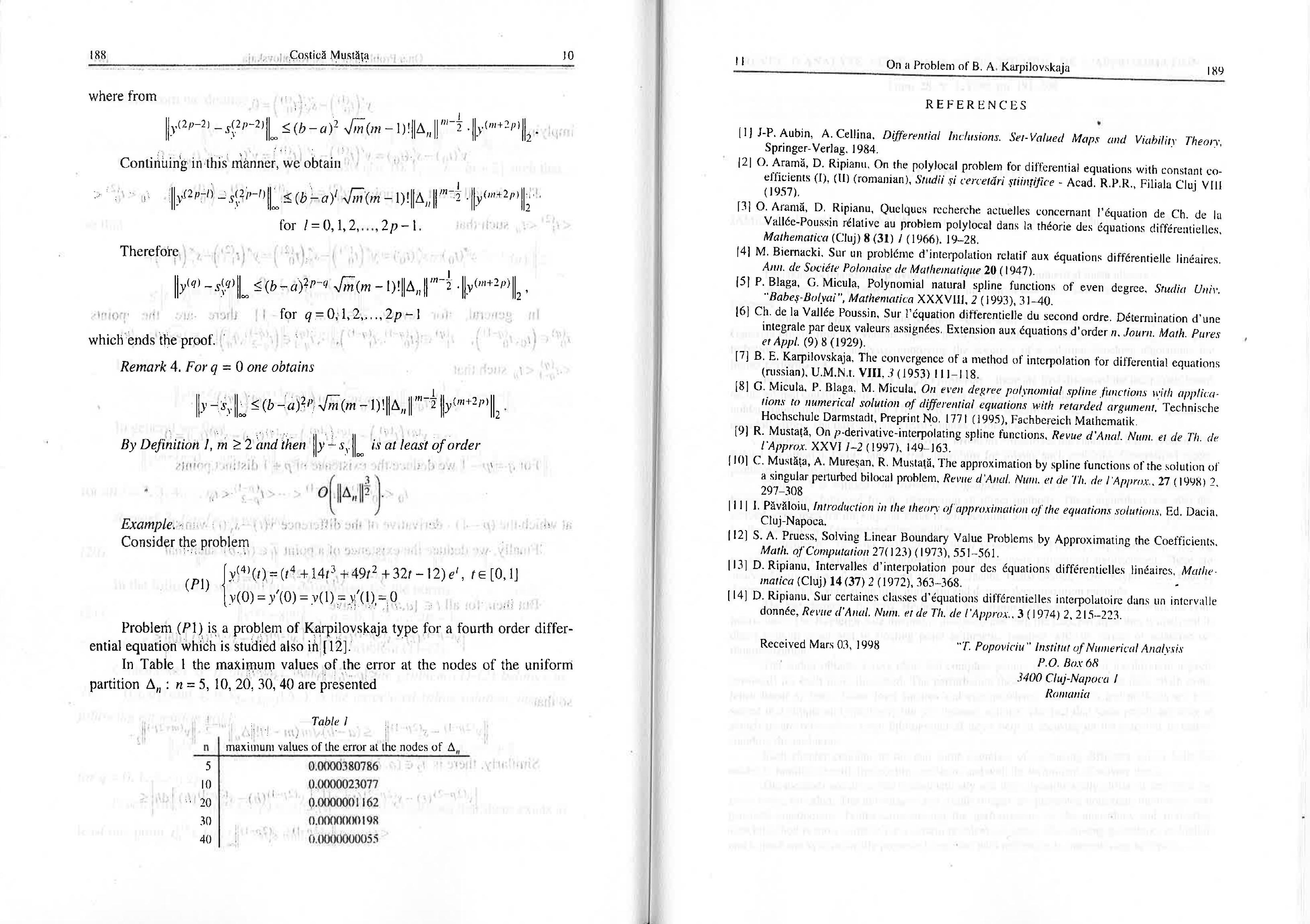[15] D. Ripianu, Sur certaines classes d’équations différentielles interpolatoire dans un intervalle donnée, Revue d’anal. Numer. et de Theor. de l’Approx., 3 (1974), 2, pp. 215-223,