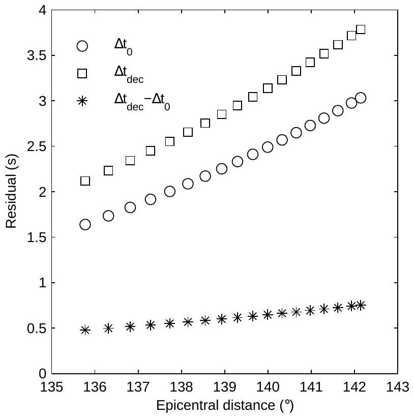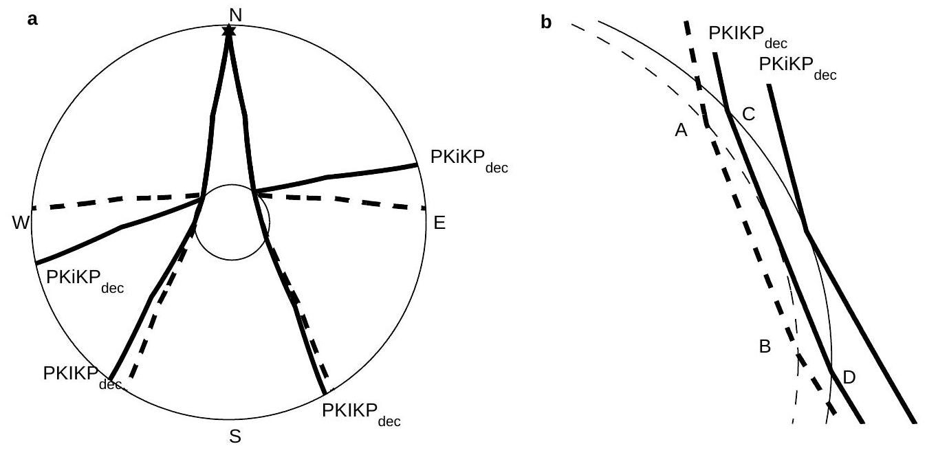 tive. In the diametrically opposite region of the inner core the distance CD is smaller than AB and the residual is negative, resulting in a hemispheric asymmetry. Hence, the asymmetry of the residuals of the differential travel time can be explained by the variation of the PKIKP