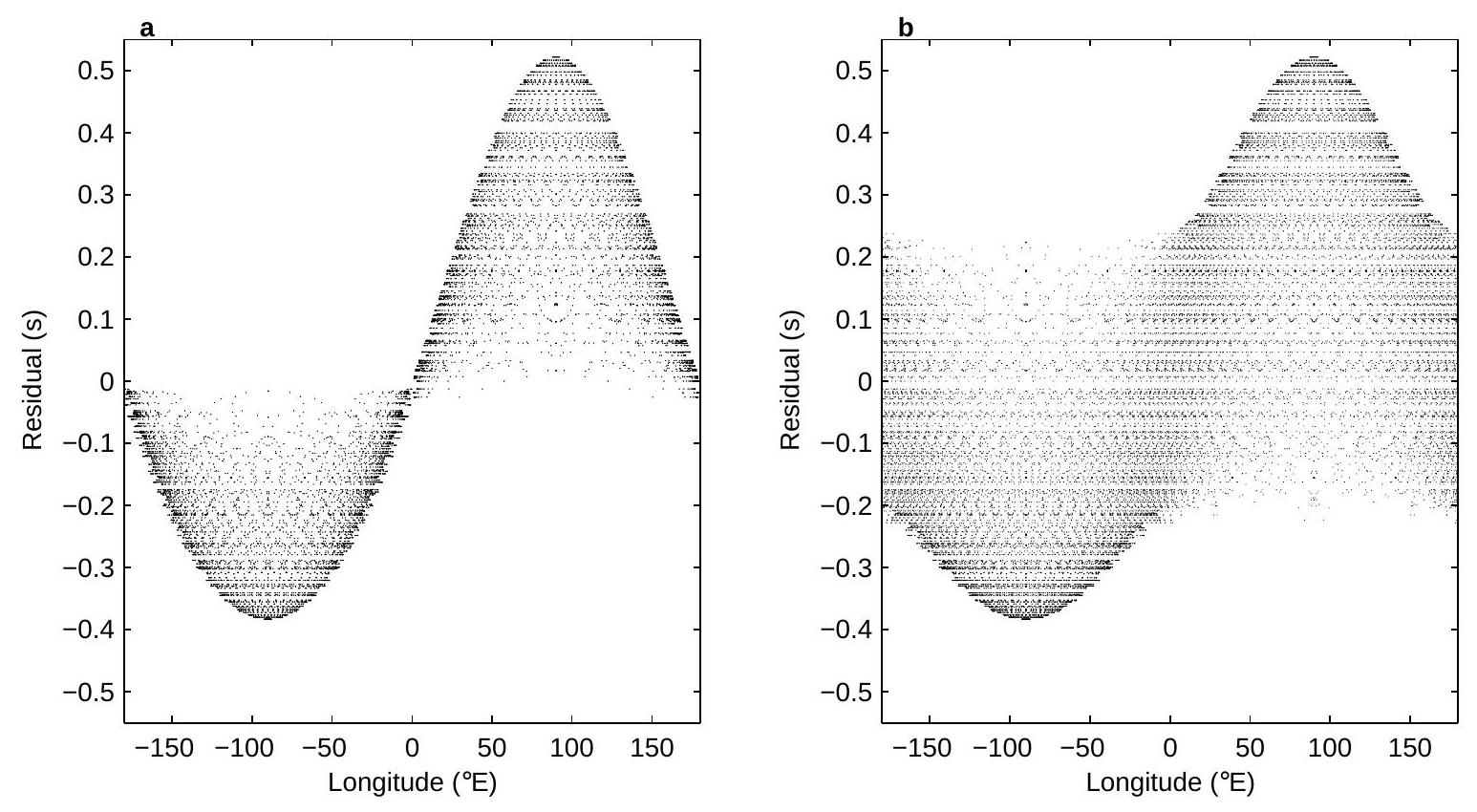is displaced outside the equatorial plane, the separation of the positive and negative residuals is not so definite (Fig. 3b).