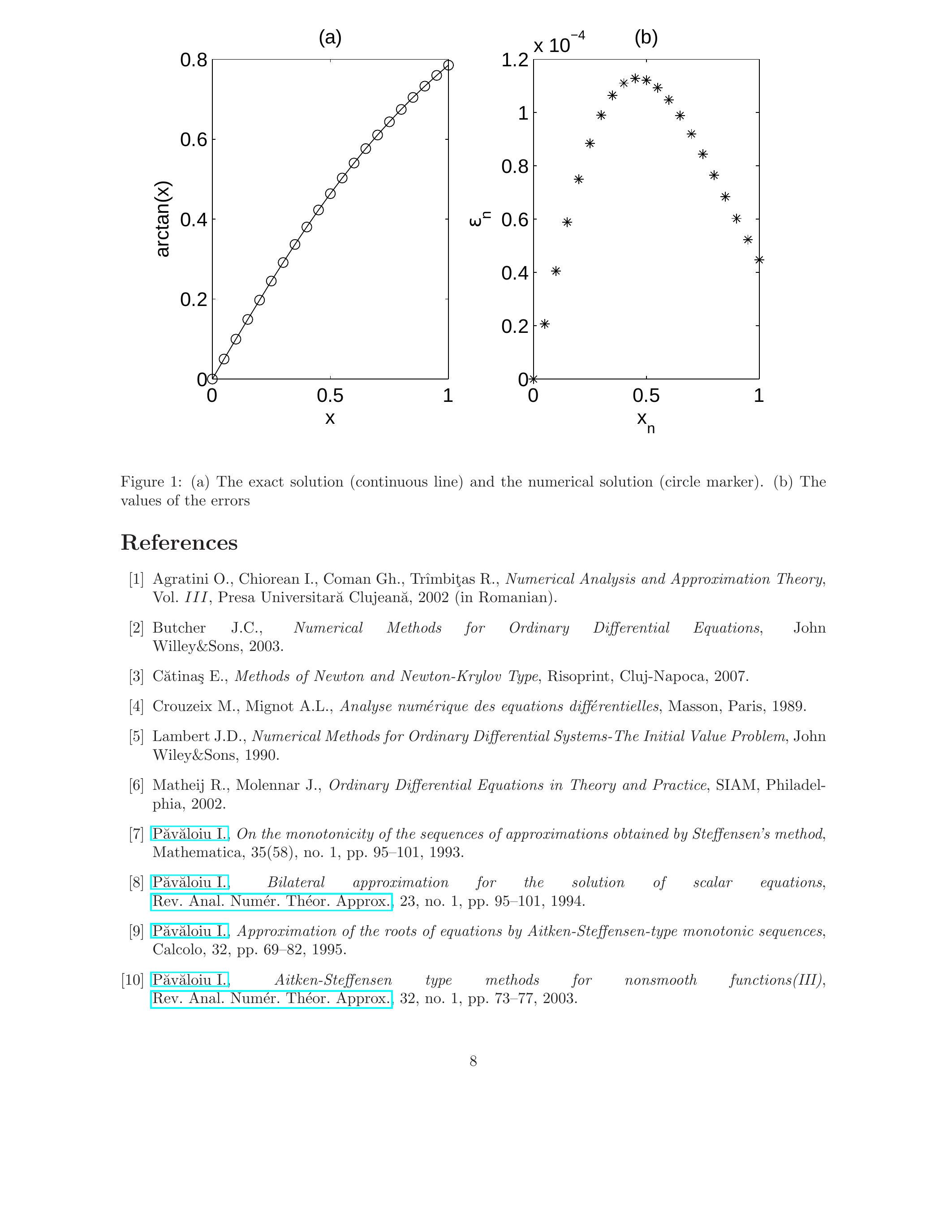 [7] Pavaloiu, On the monotonicity of the sequences of approximations obtained by Steffensen’s method, Mathematica, 35, no. 1 (1993), 95-101.