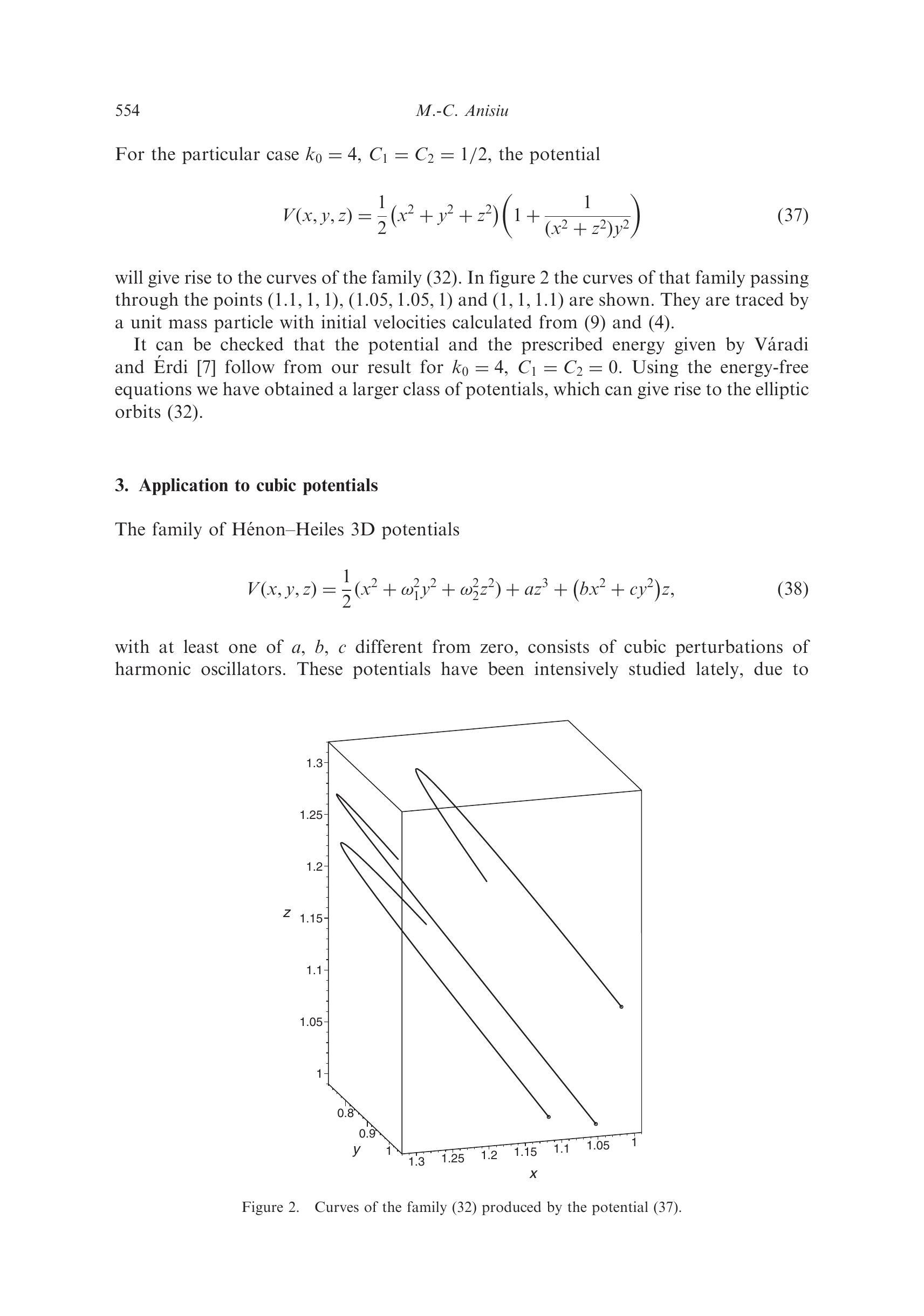with a priori energy given E(f,g)=g(2+f^(2))//2E(f, g)=g\left(2+f^{2}\right) / 2, Váradi and Érdi [7] and Bozis and Nakhla [10], have found the central potential V=(x^(2)+y^(2)+z^(2))//2V=\left(x^{2}+y^{2}+z^{2}\right) / 2, which gives rise to the curves of the family (32). For this family we have
