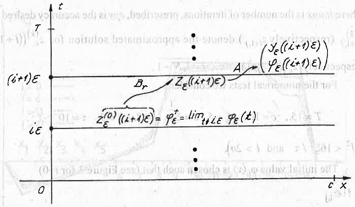 For fixed , the computation of the approximate solution by fractional step method can be illustrated as in Figure 2